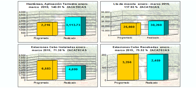 En Baja Prevalencia de 521 trampas instaladas se redujo a 410 por la cancelación del 21.31% de trampeo comercial; mientras que por el reordenamiento de esta misma actividad en Zona Libre de 143 trampas en área marginal pasó a 199, un aumento del 39.16%, mientras que en el área comercial de 115 se redujo a 34, lo que significa el 70.43% menos; dando un total de 9.69% menos en ésta zona. Del total del estado se tiene un 17.46% menos de trampas instaladas, lo que repercute en las metas fijadas en el Programa de Trabajo 2015.